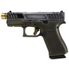 The Glock 43X finished in Tarpon OD Green with a contrasting grey slide brings together concealability, modern styling, and upgraded performance in a slim 9mm platform. This build includes a gold threaded barrel from Zaffiri Precision, known for its tight machining, durable construction, and ability to accommodate compensators or suppressors. The optics-ready slide expands sighting options, making it a strong choice for everyday carry or range work with the ability to mount a micro red dot.